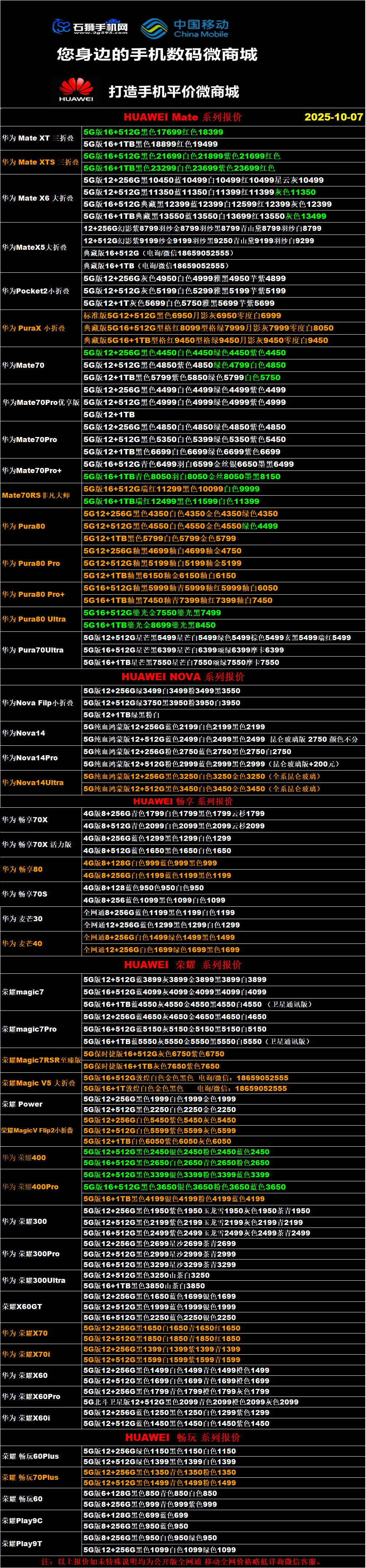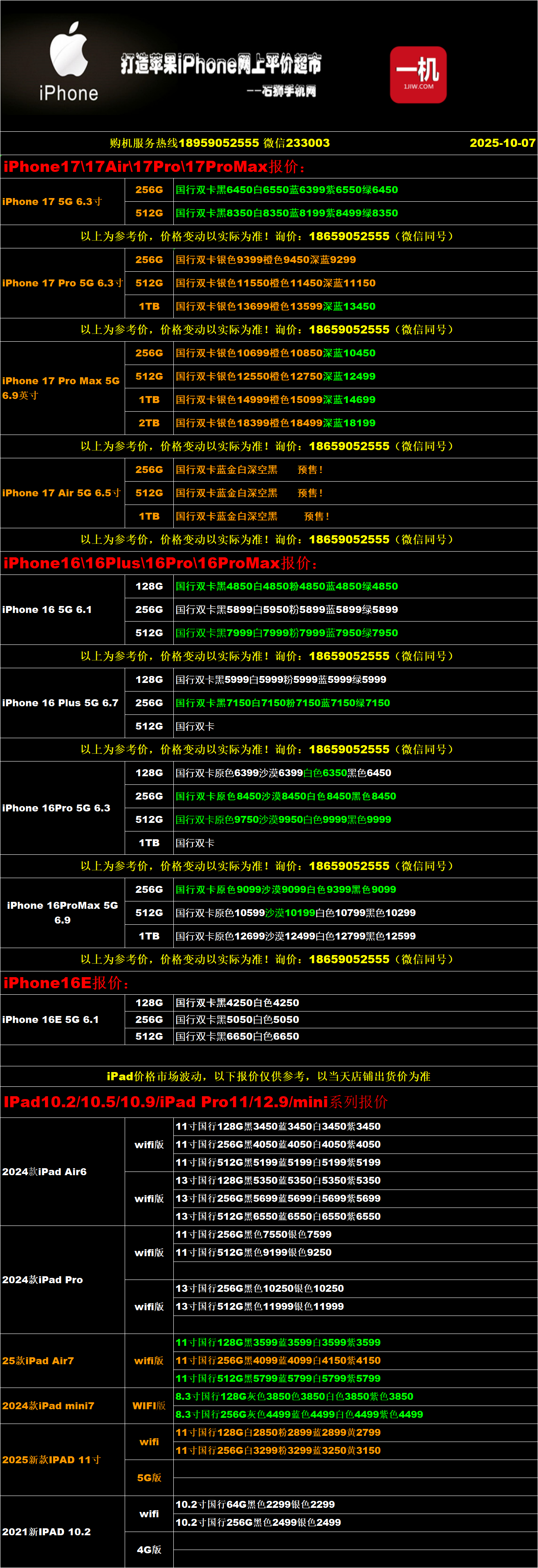 一机网手机报价单10-07