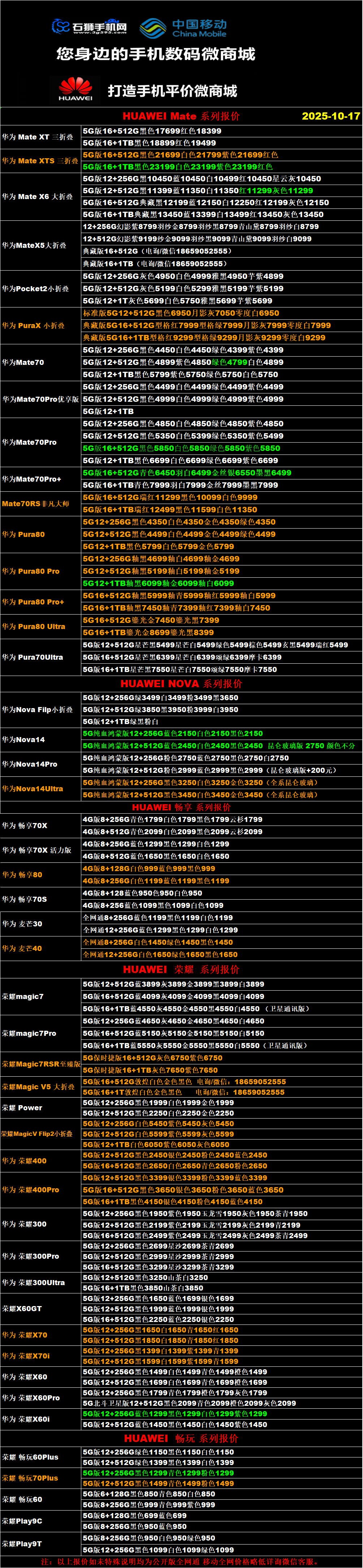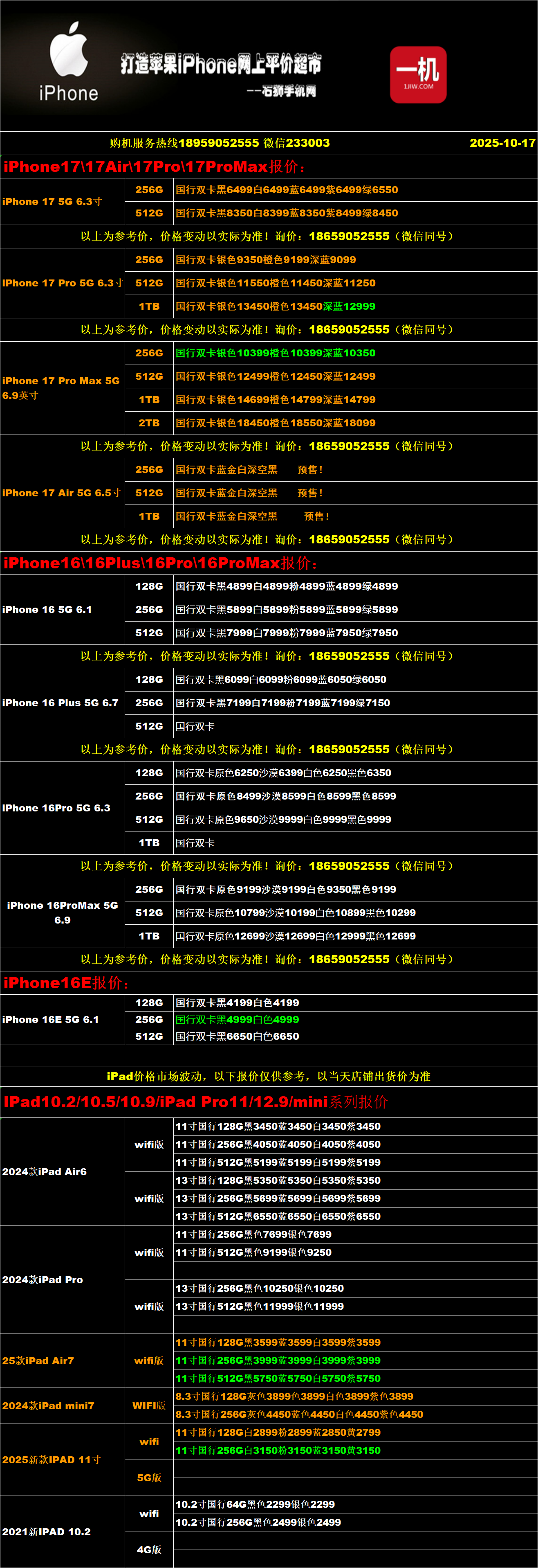 一机网手机报价单10-17