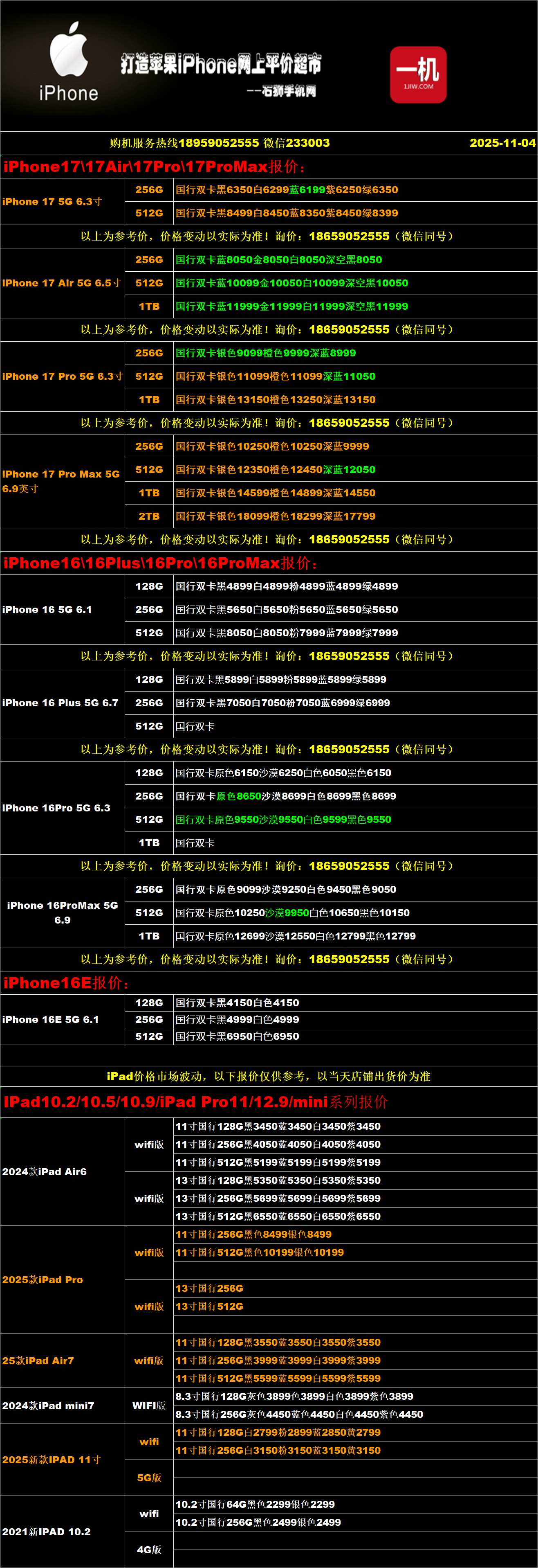 一机网手机报价单11-04