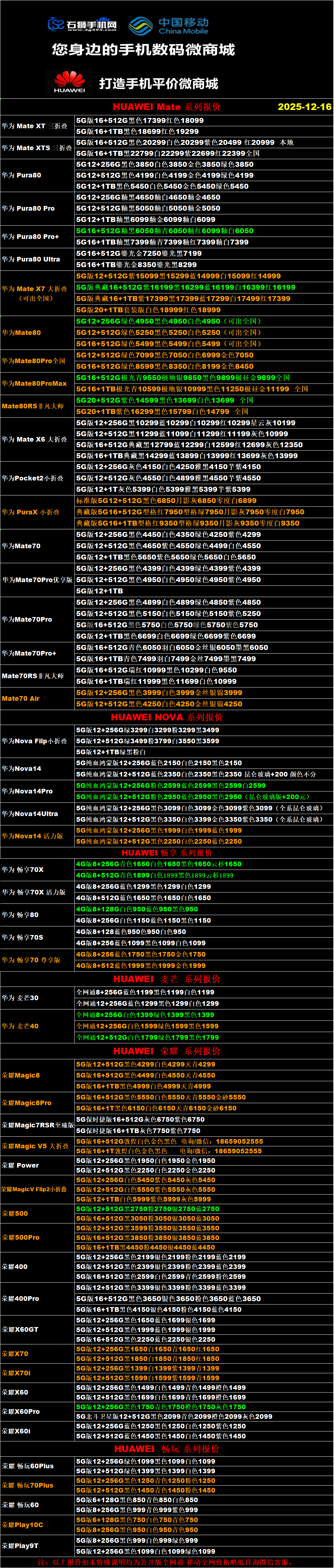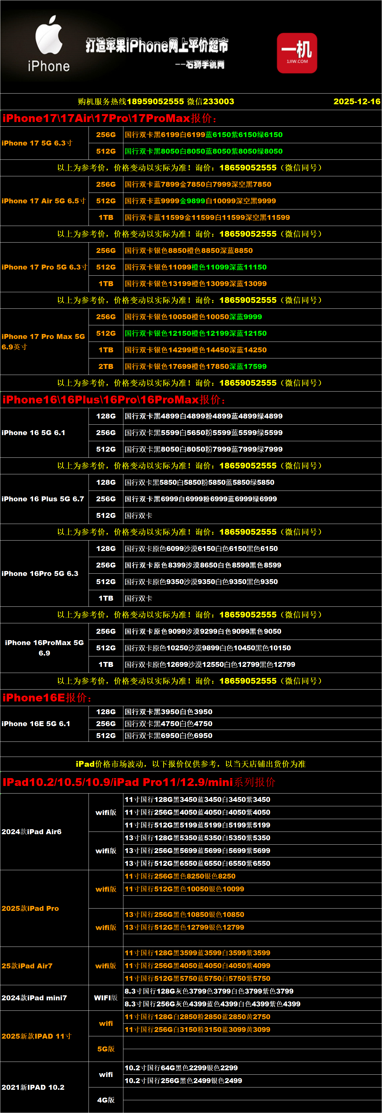 一机网手机报价单12-16