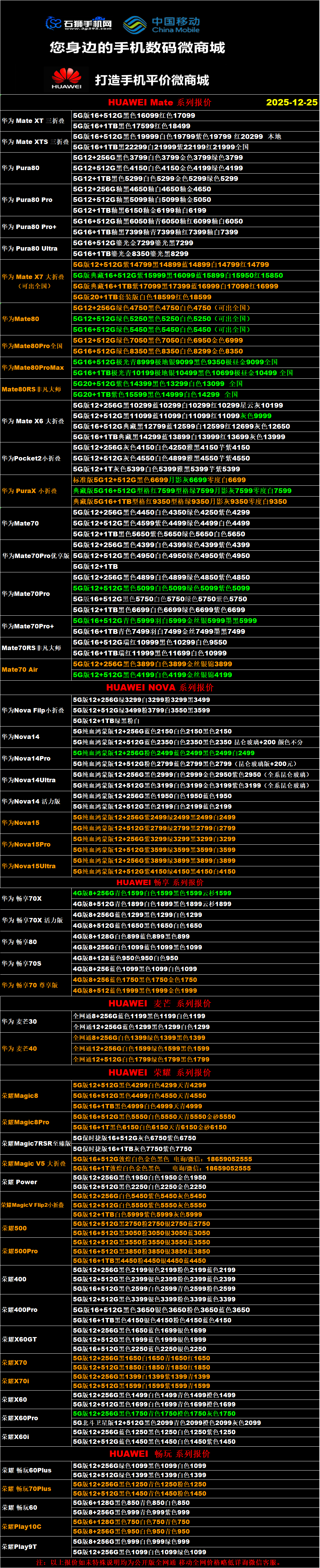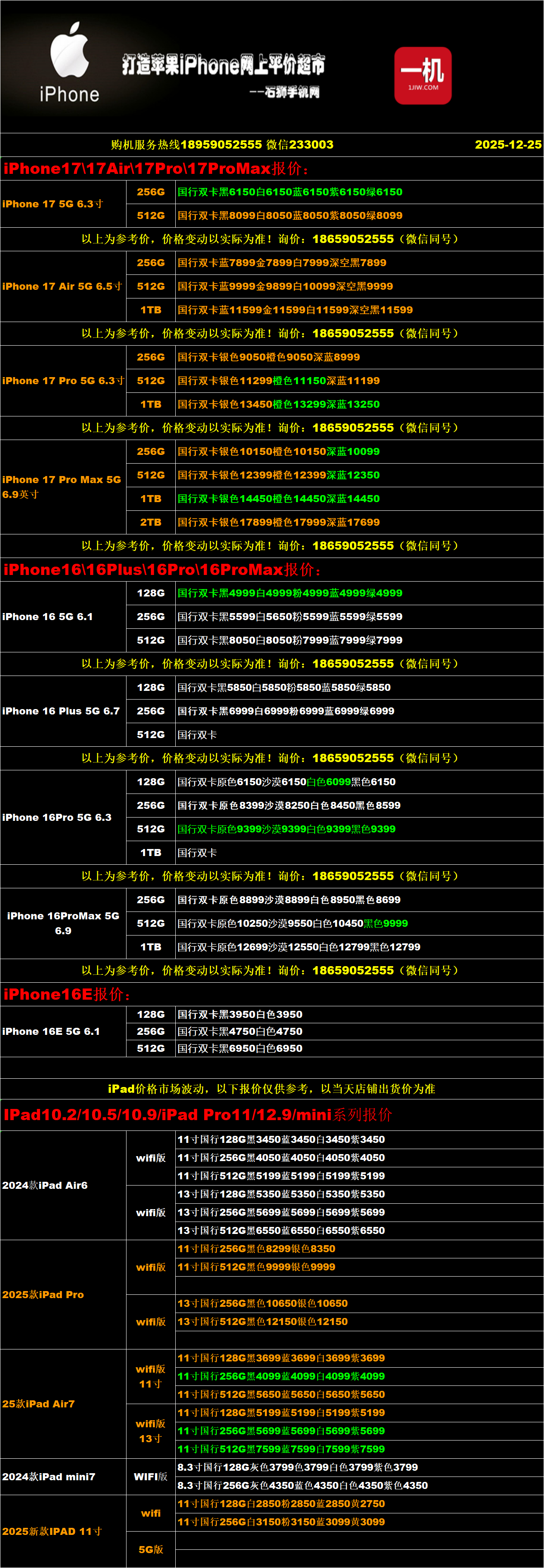一机网手机报价单12-25