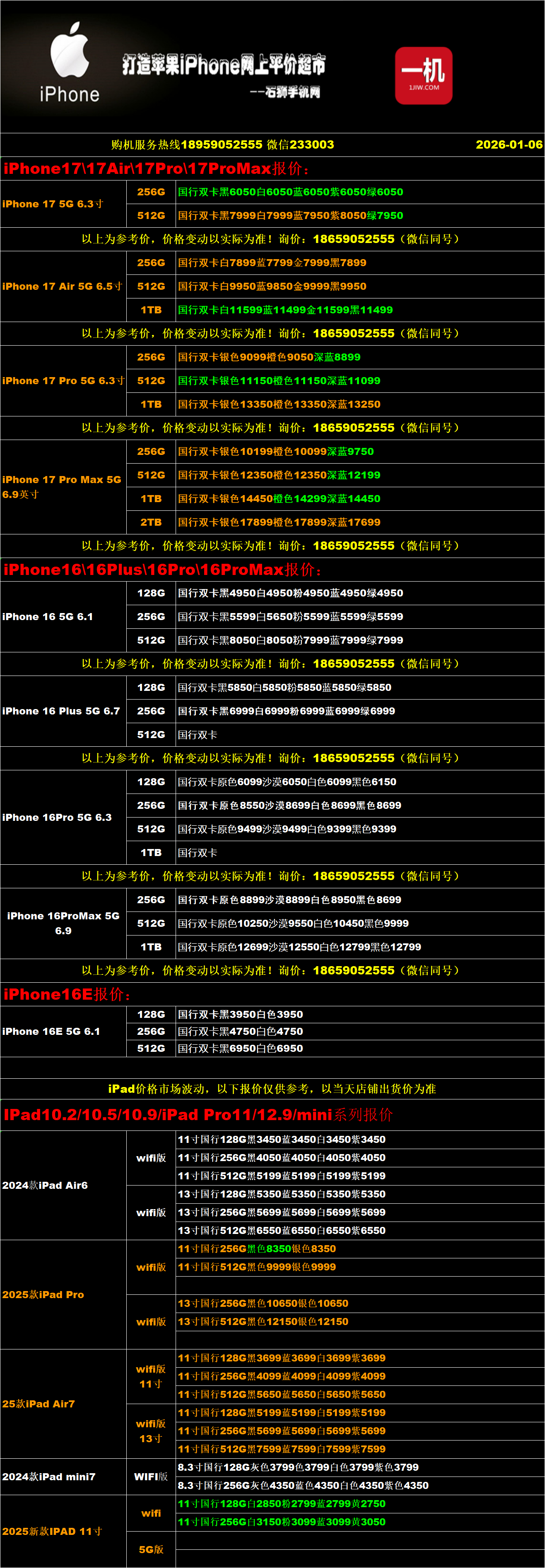 一机网手机报价单01-06