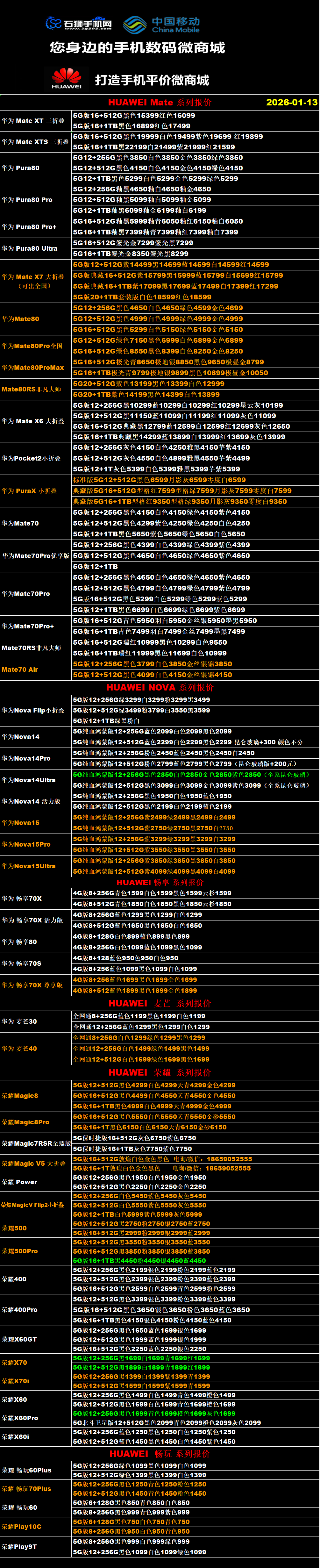 一机网手机报价单01-13