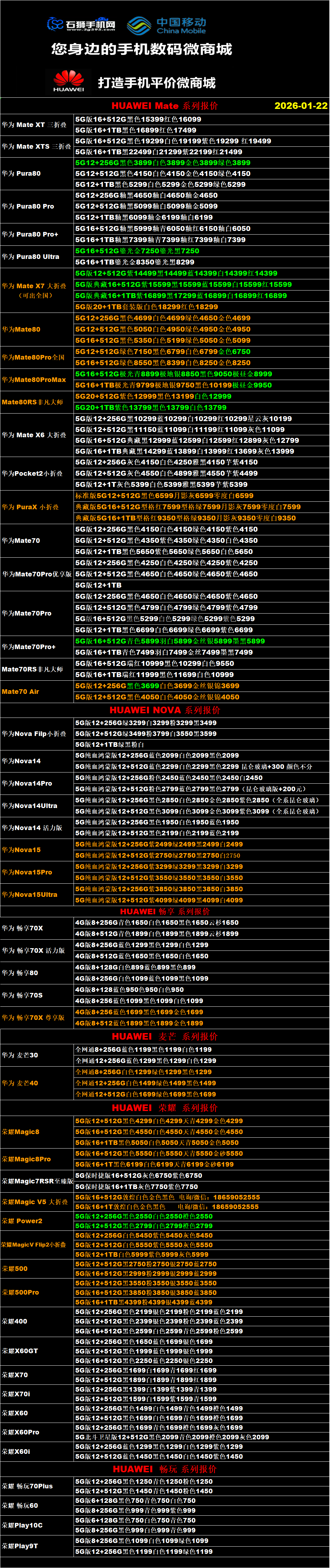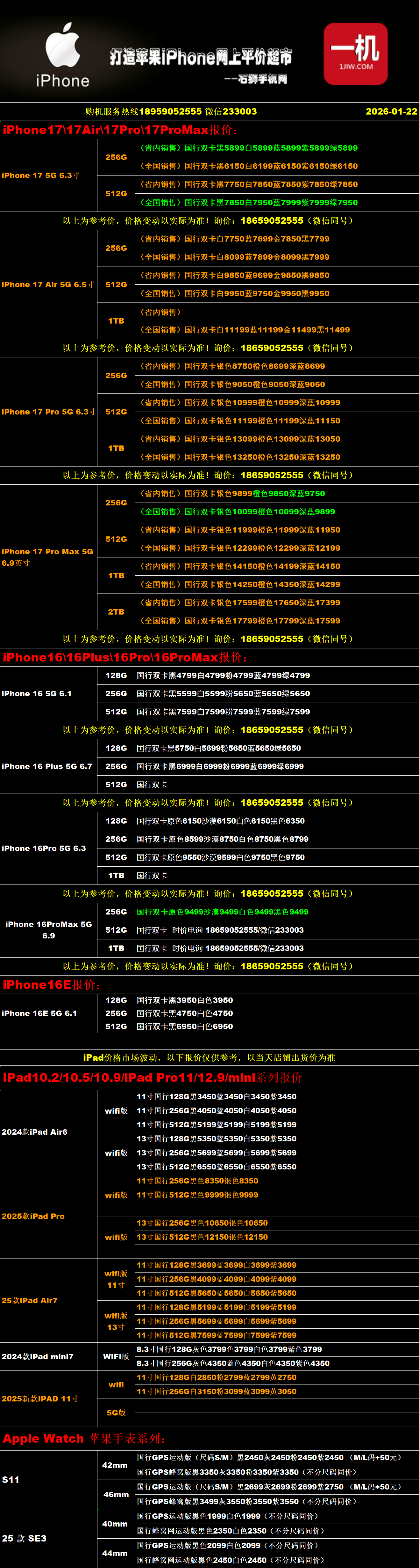 一机网手机报价单01-22