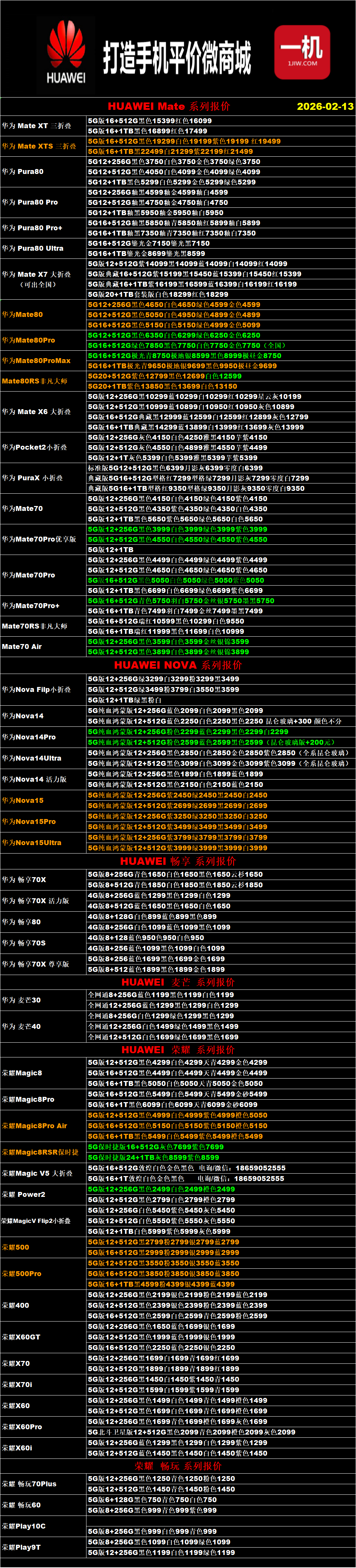 一机网手机报价单02-13