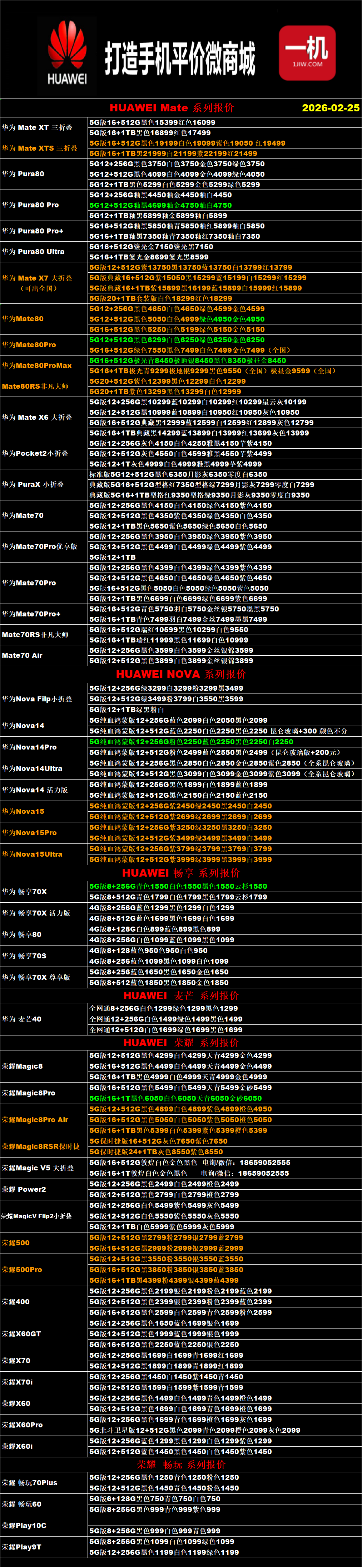 一机网手机报价单02-25