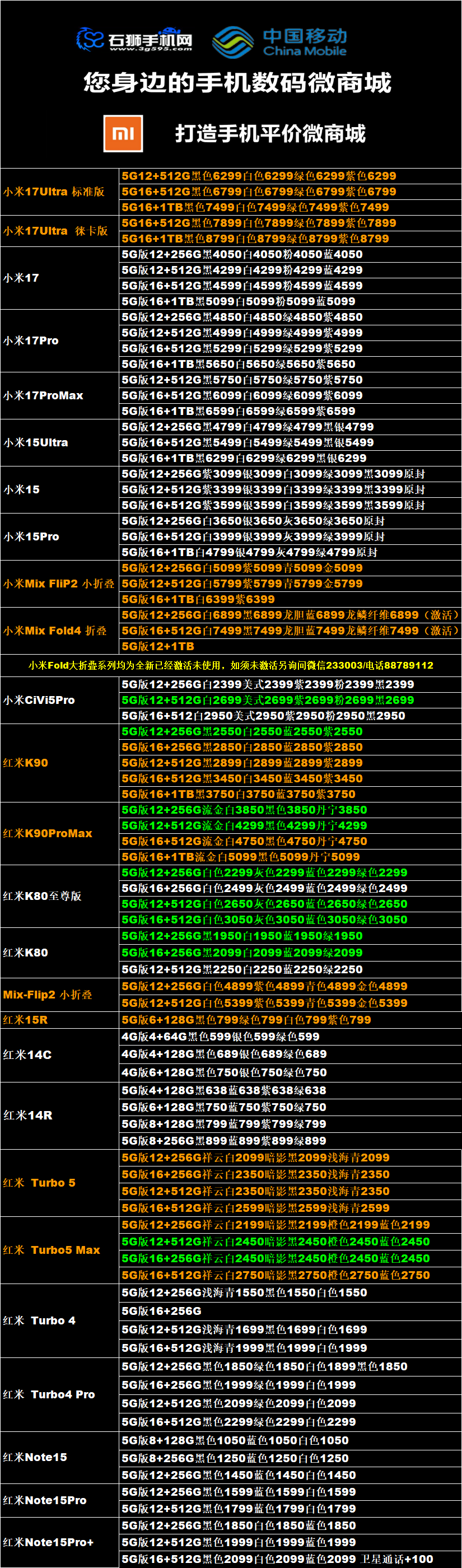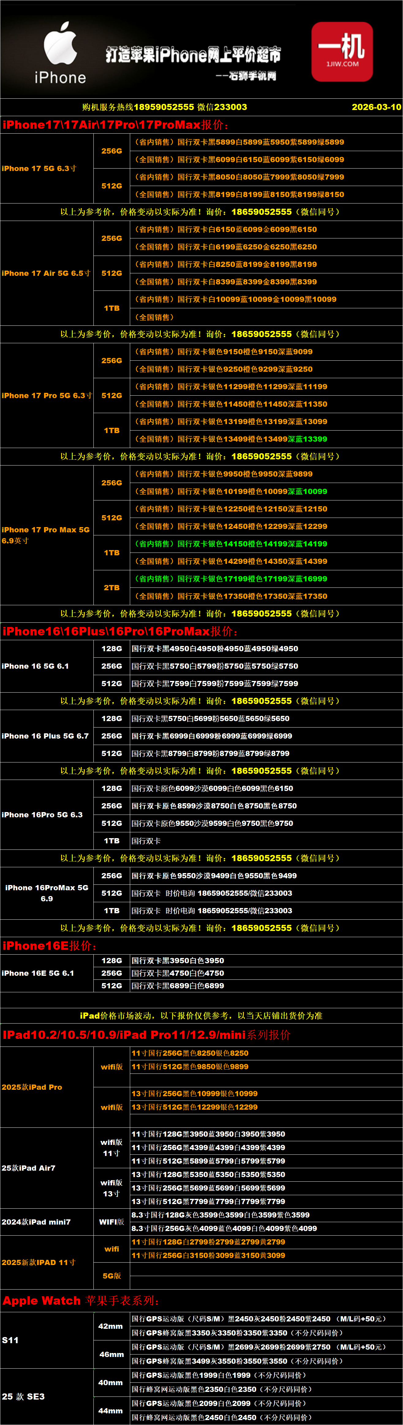 一机网手机报价单03-10