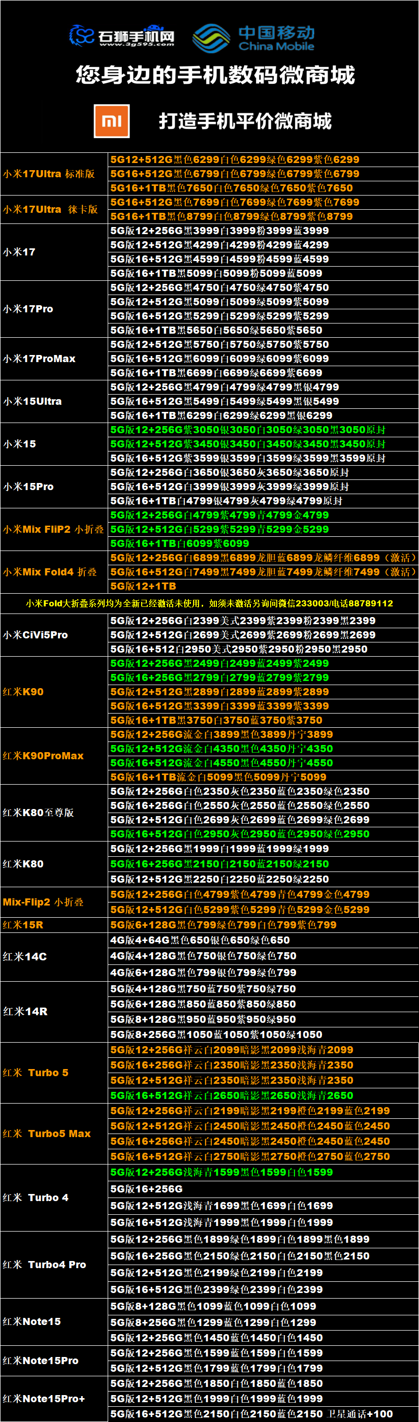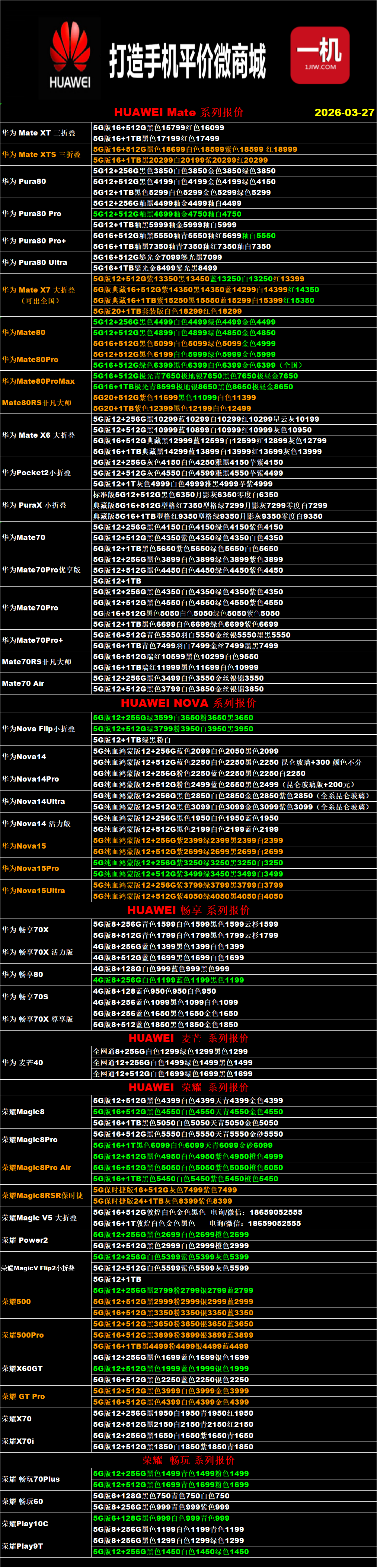 一机网手机报价单03-27