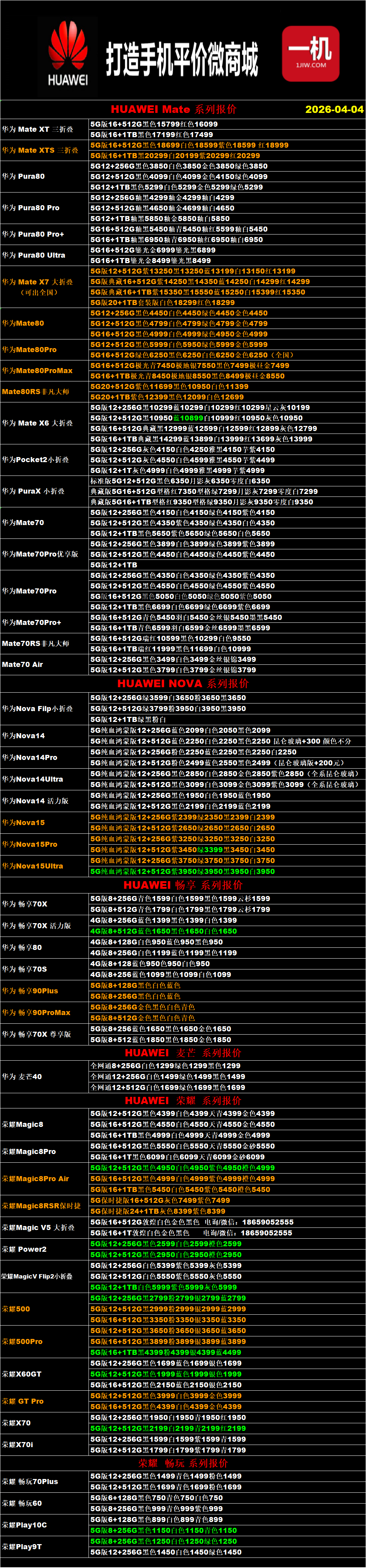 一机网手机报价单04-04