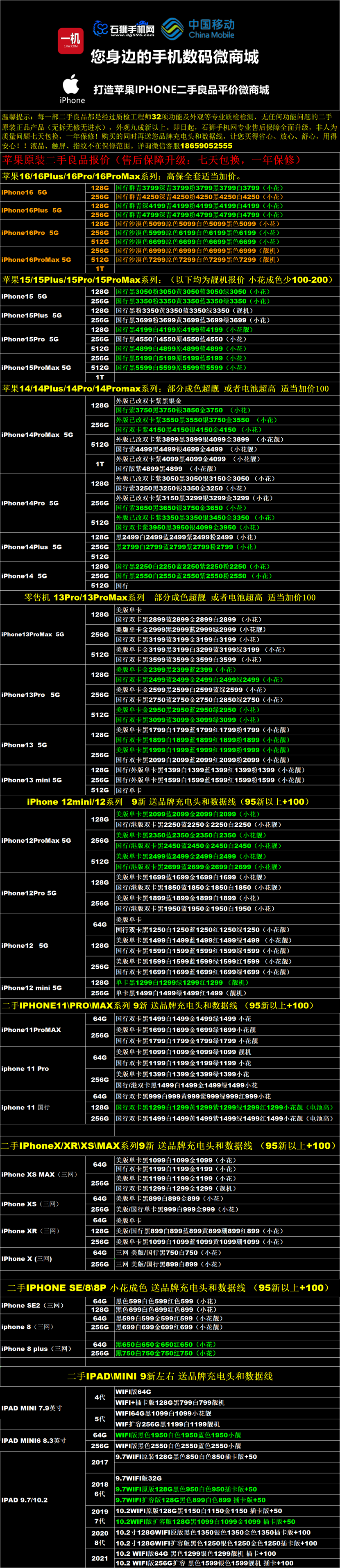 苹果原装二手良品报价表!