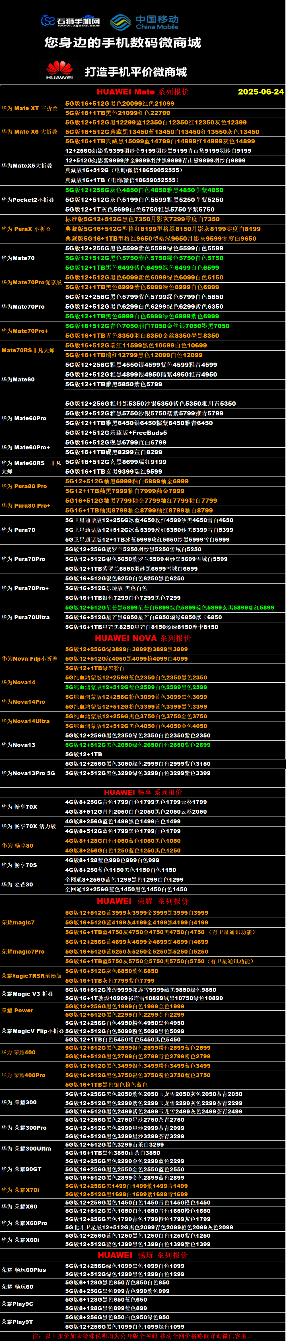 一机网手机报价单06-25
