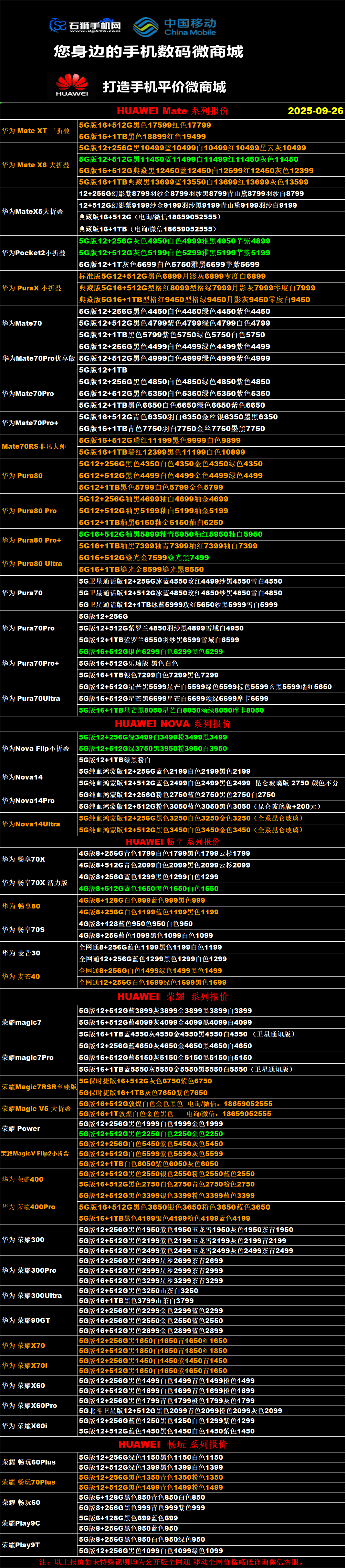一机网手机报价单09-26