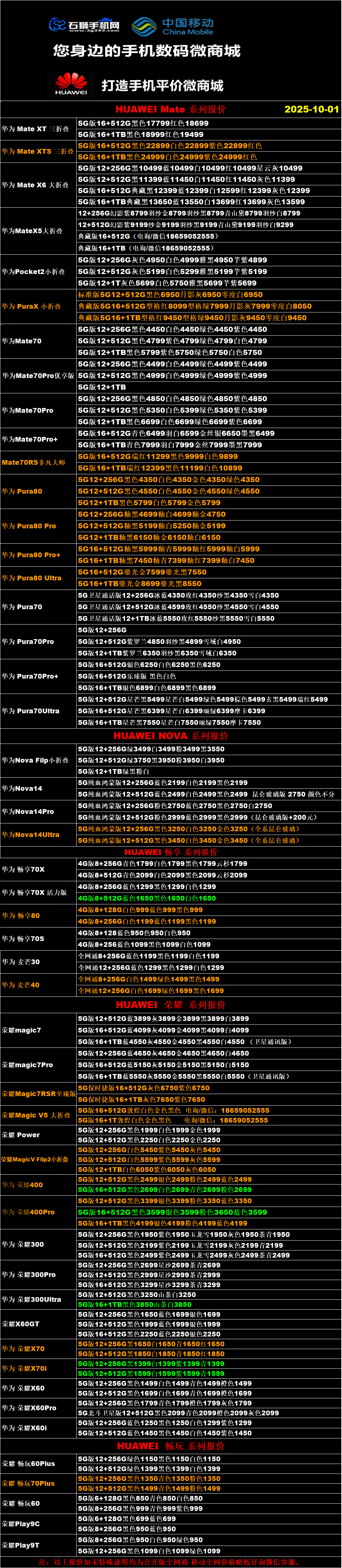 一机网手机报价单10-01