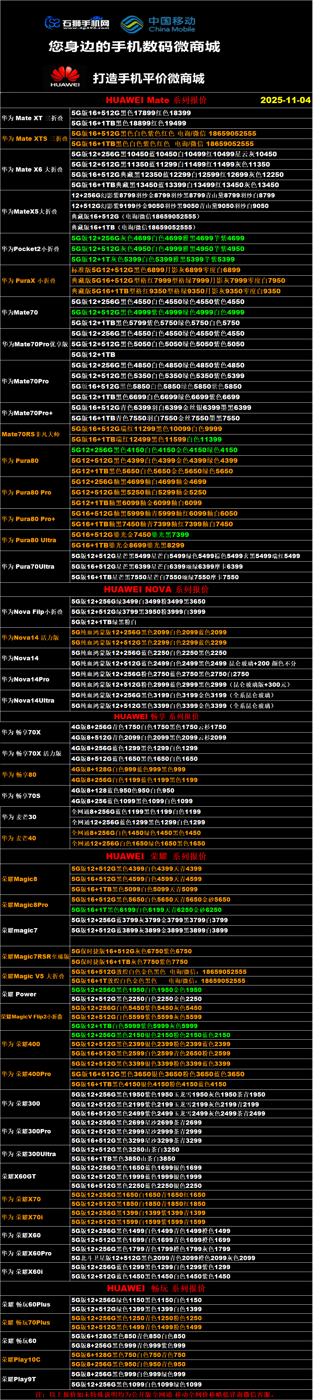一机网手机报价单11-04