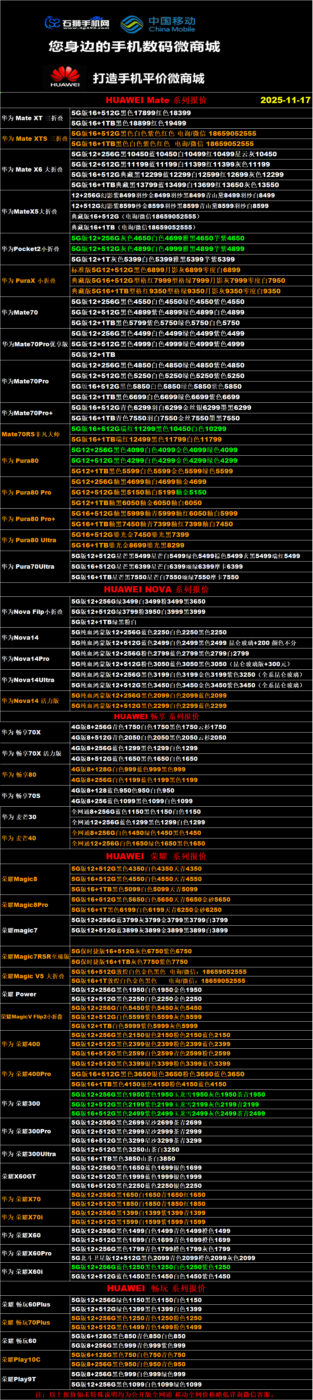 一机网手机报价单11-17