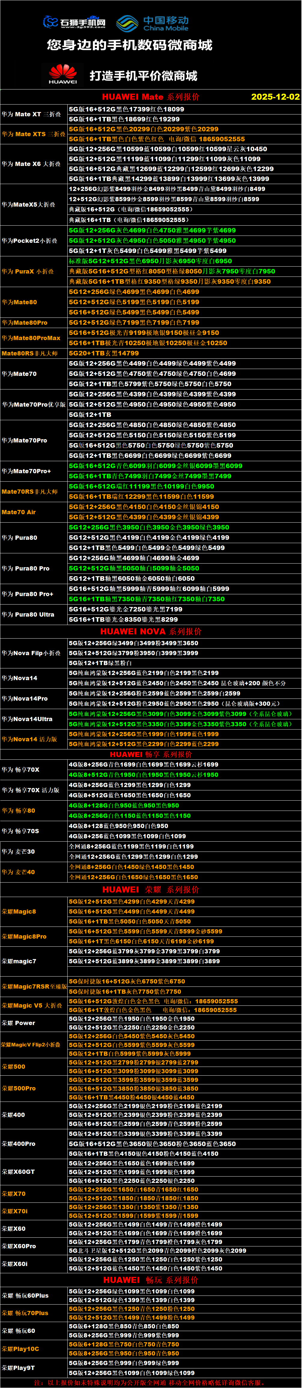 一机网手机报价单12-02