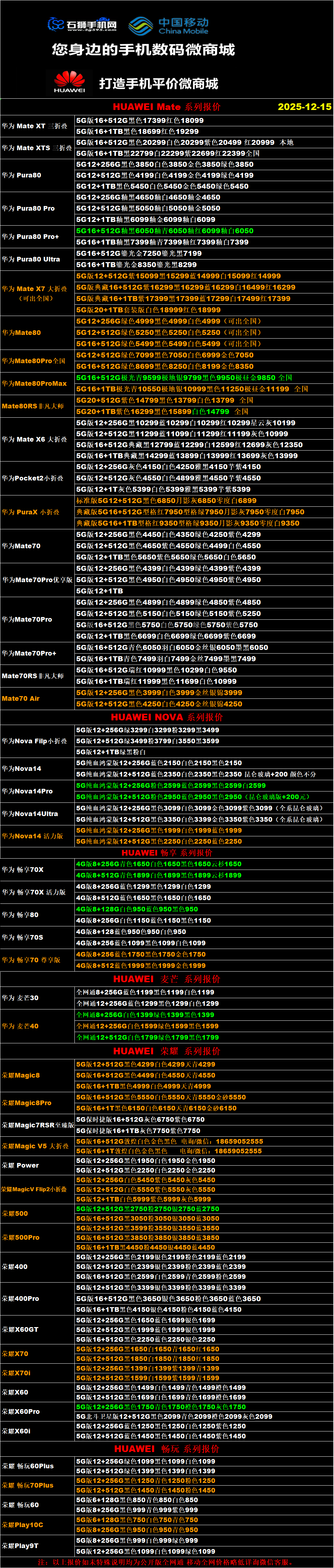一机网手机报价单12-15