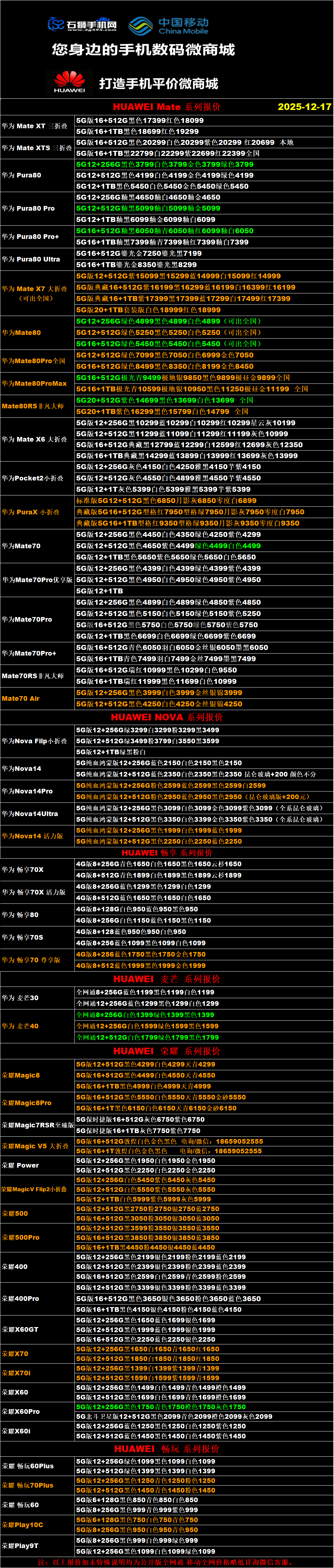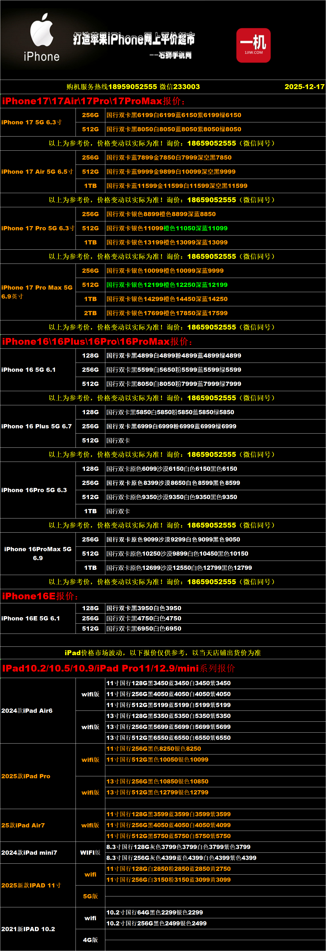 一机网手机报价单12-17