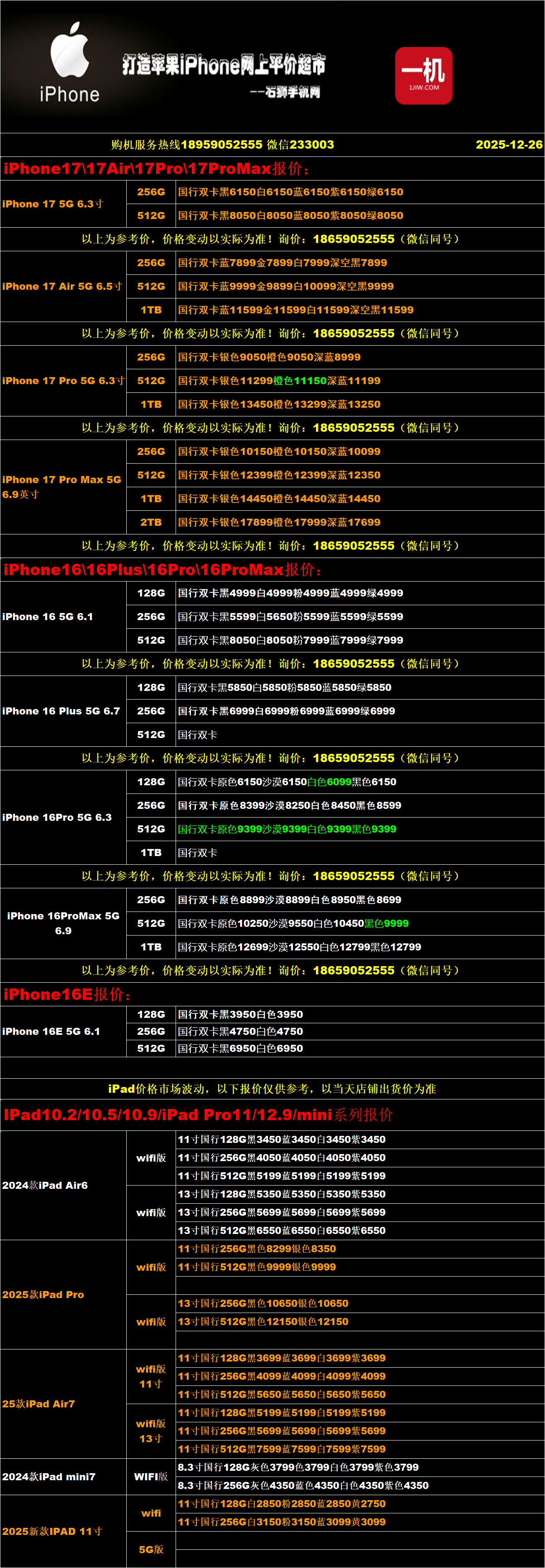 一机网手机报价单12-26