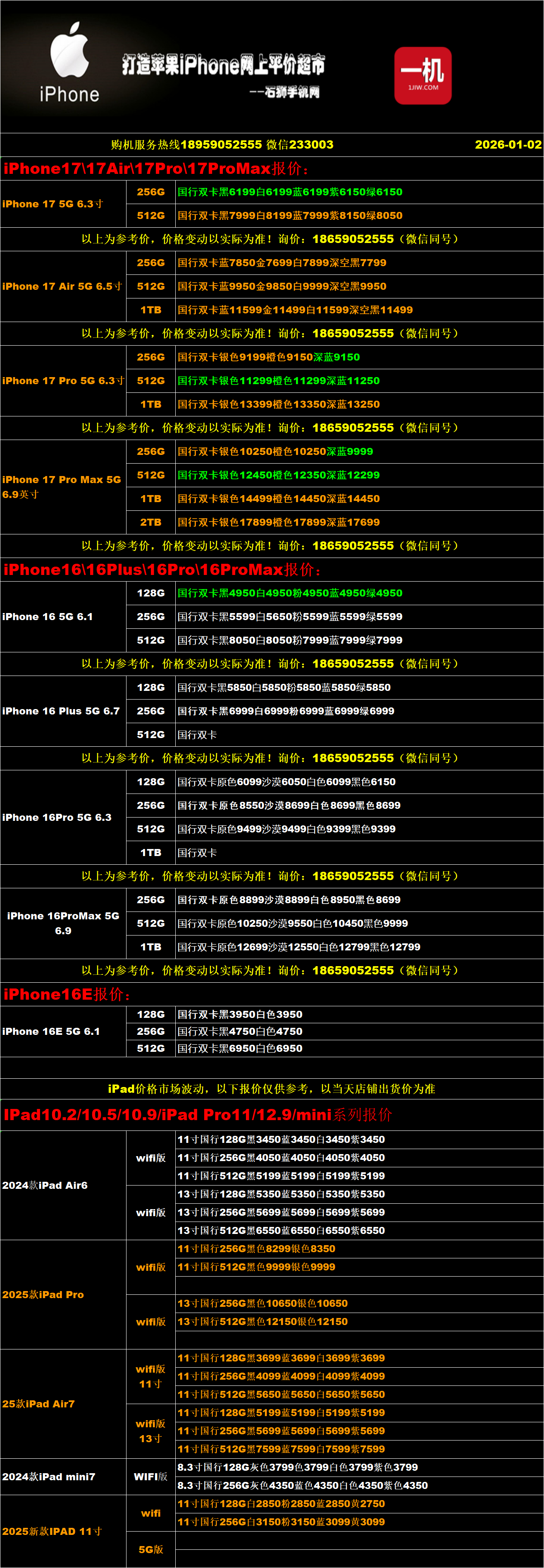 一机网手机报价单01-02