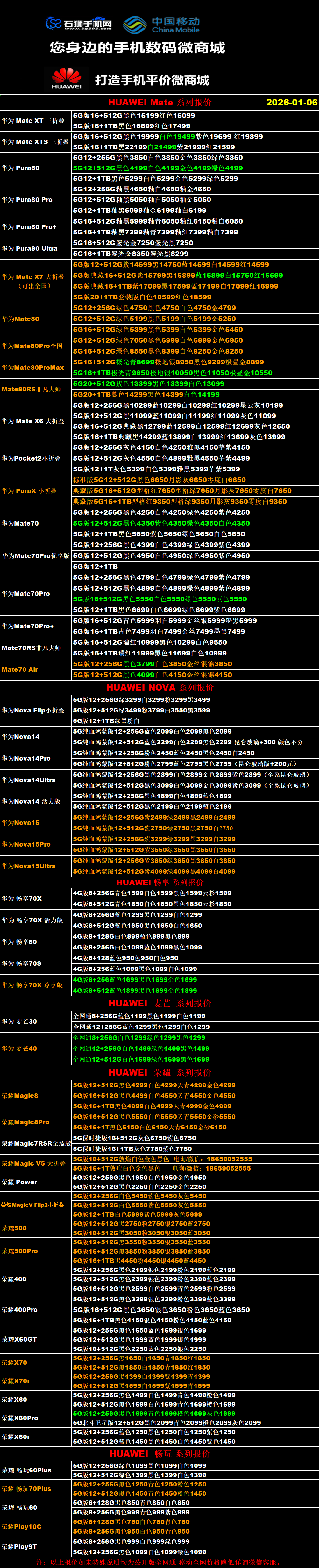 一机网手机报价单01-06