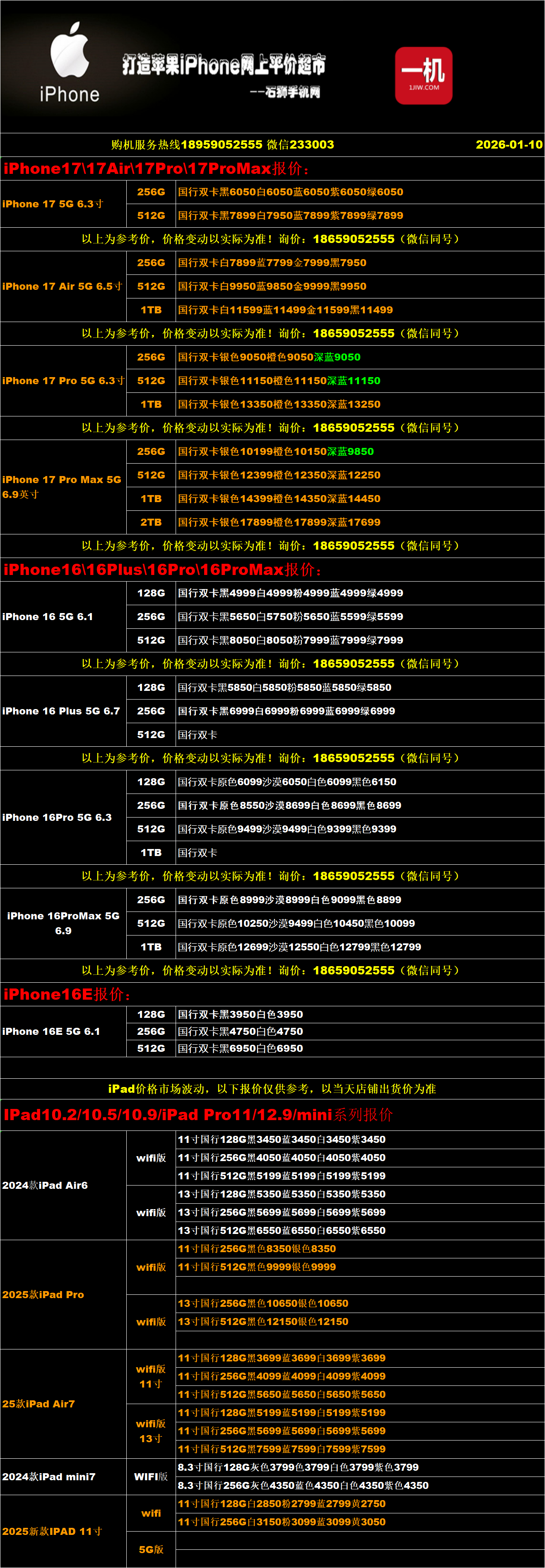 一机网手机报价单01-10