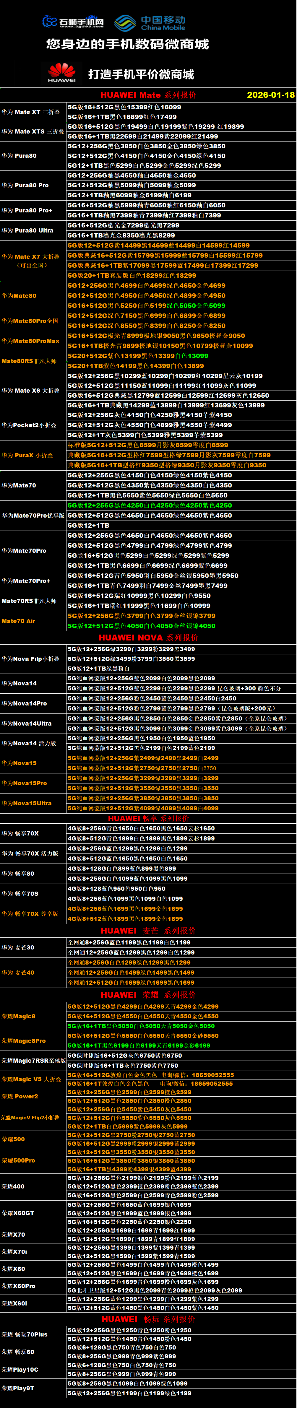 一机网手机报价单01-26