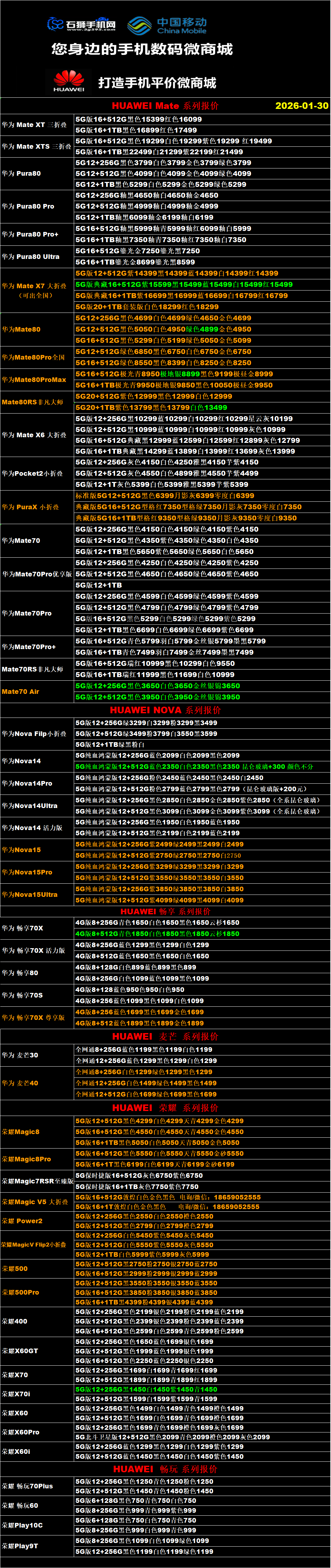 一机网手机报价单01-30