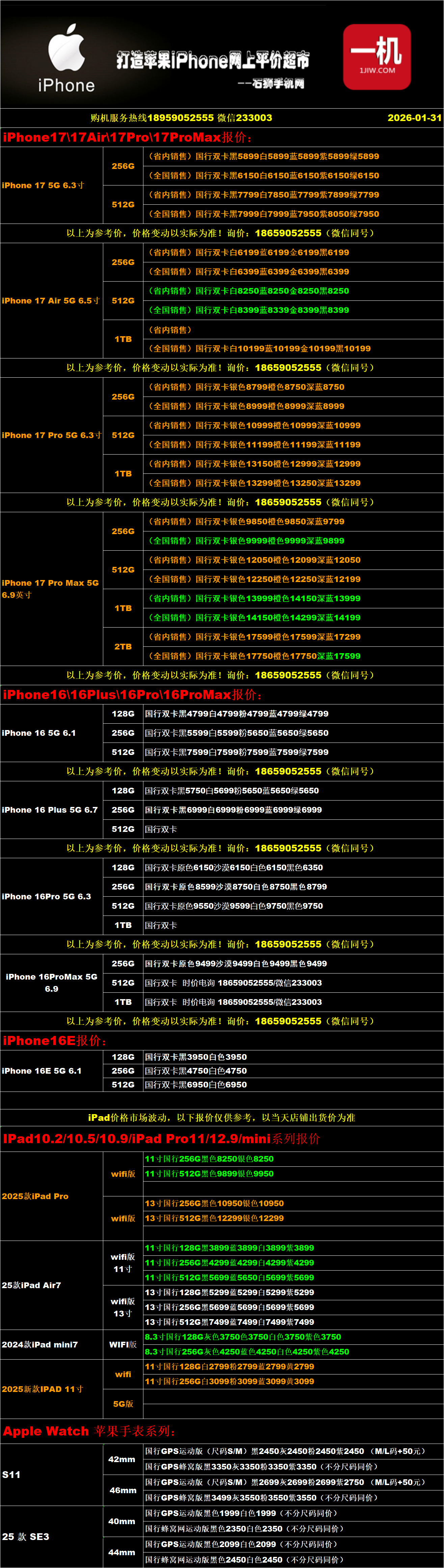 一机网手机报价单01-31