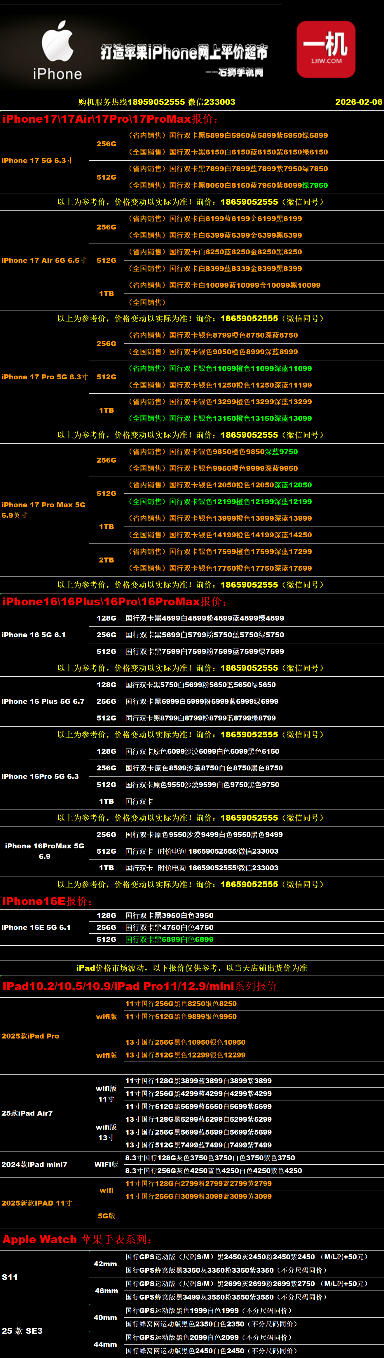 一机网手机报价单02-06