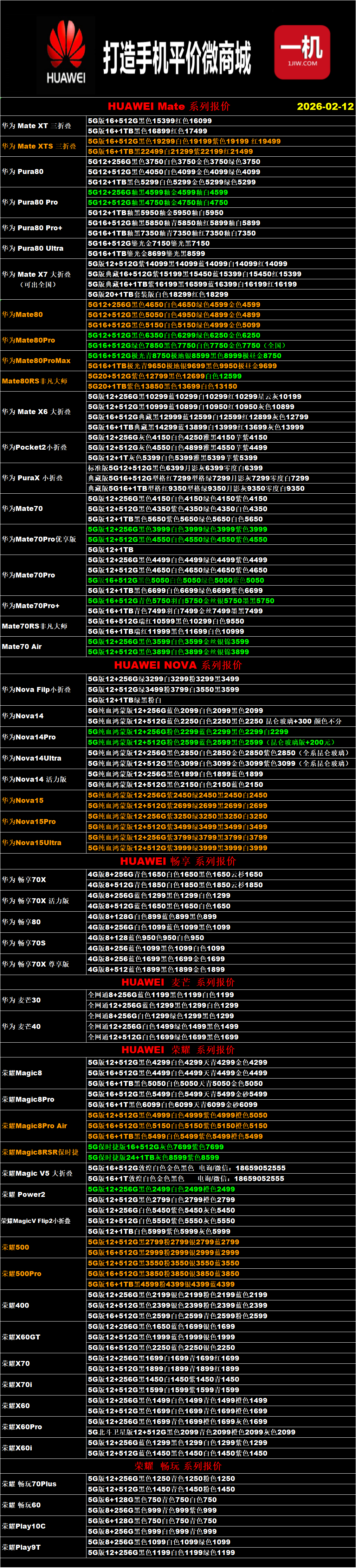 一机网手机报价单02-12