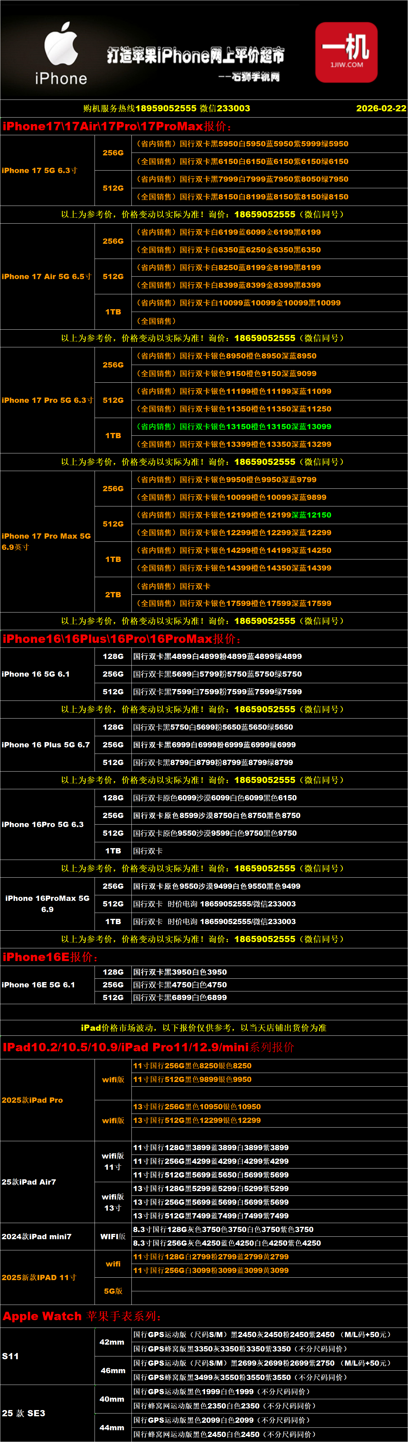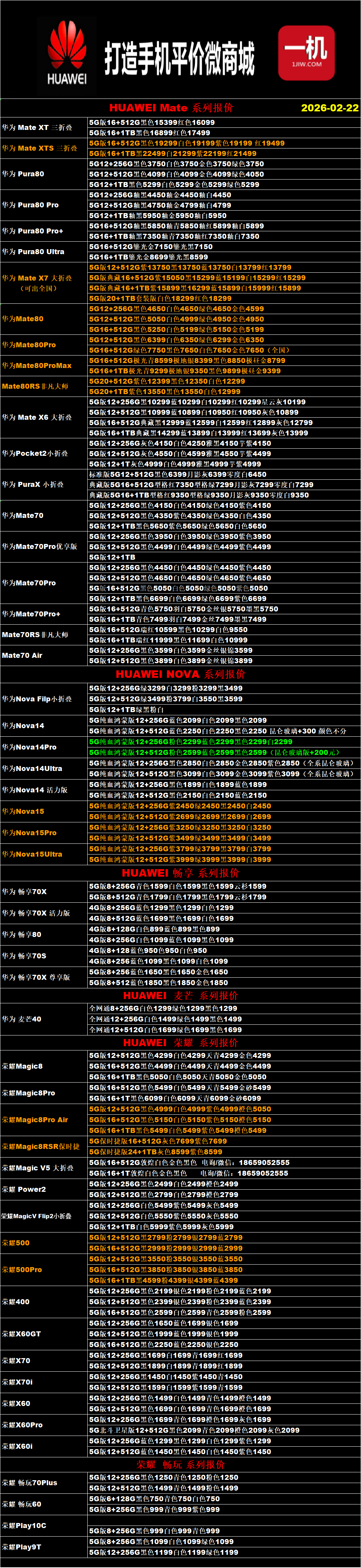 一机网手机报价单02-22