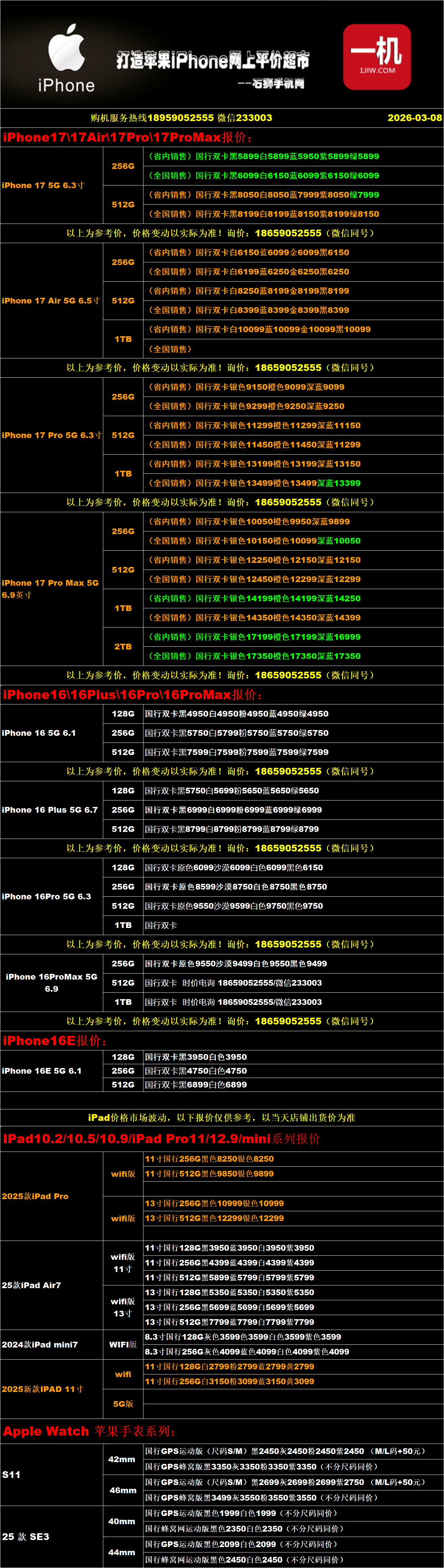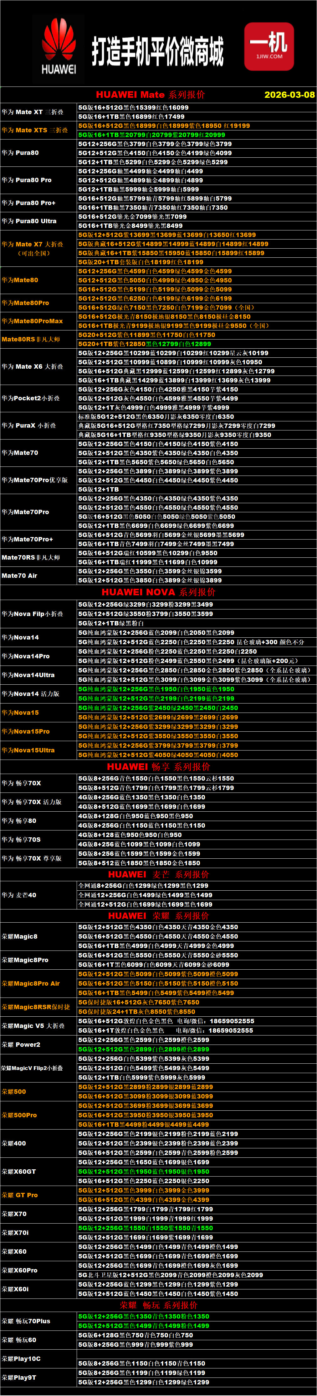 一机网手机报价单03-08