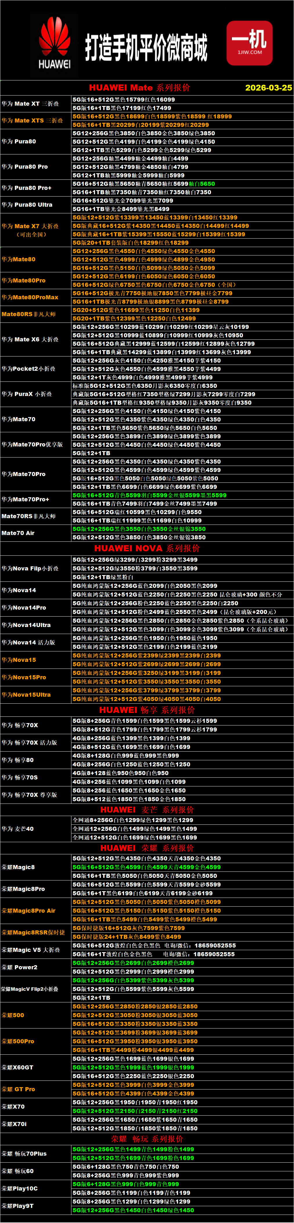 一机网手机报价单03-25