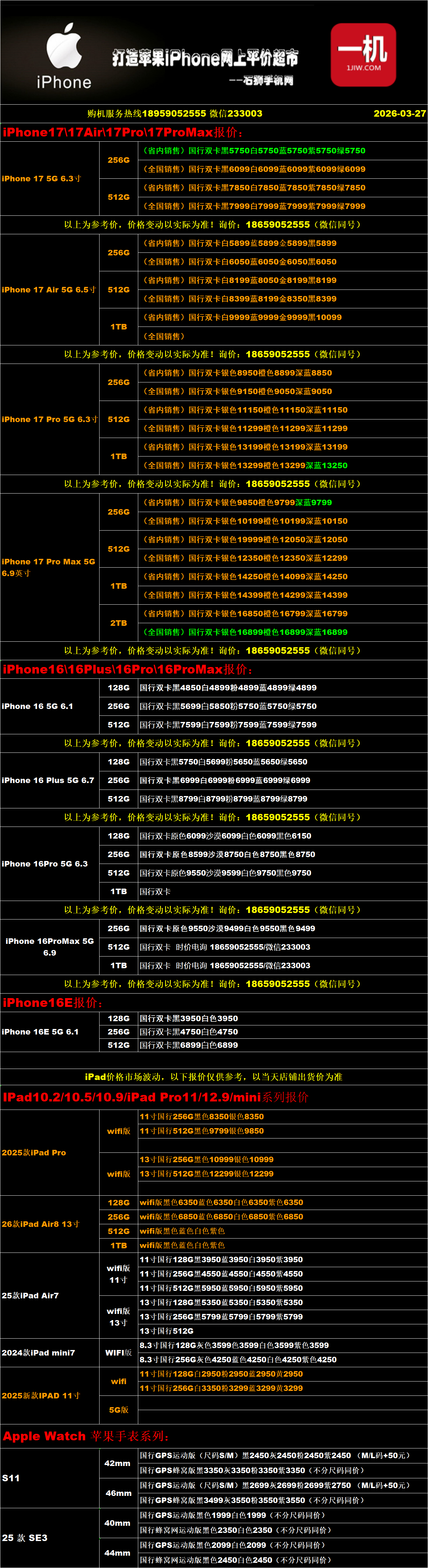 一机网手机报价单03-27