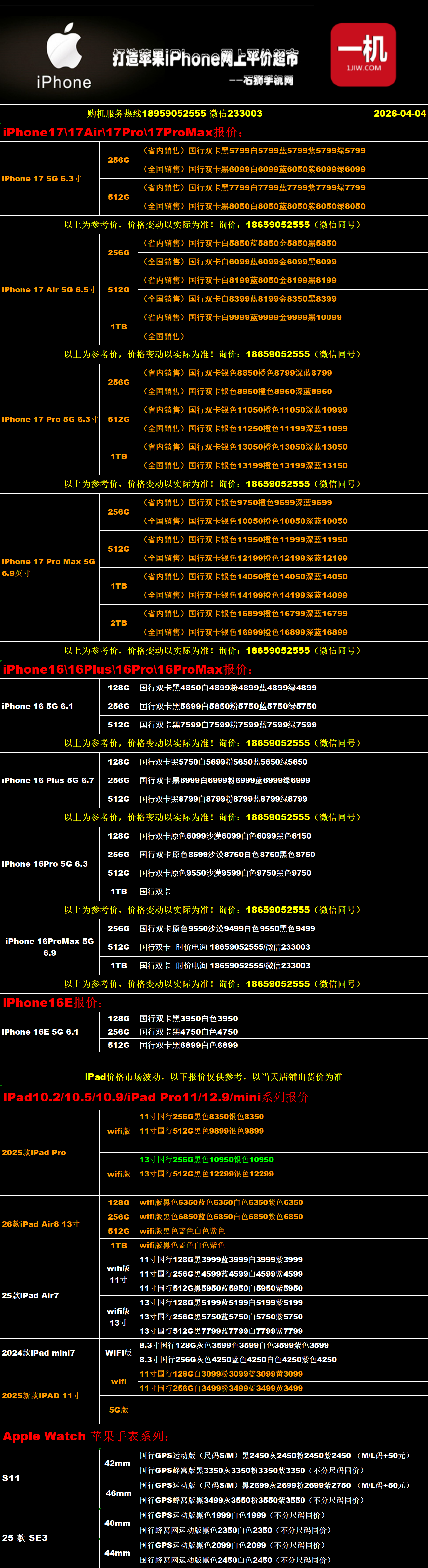 一机网手机报价单04-03